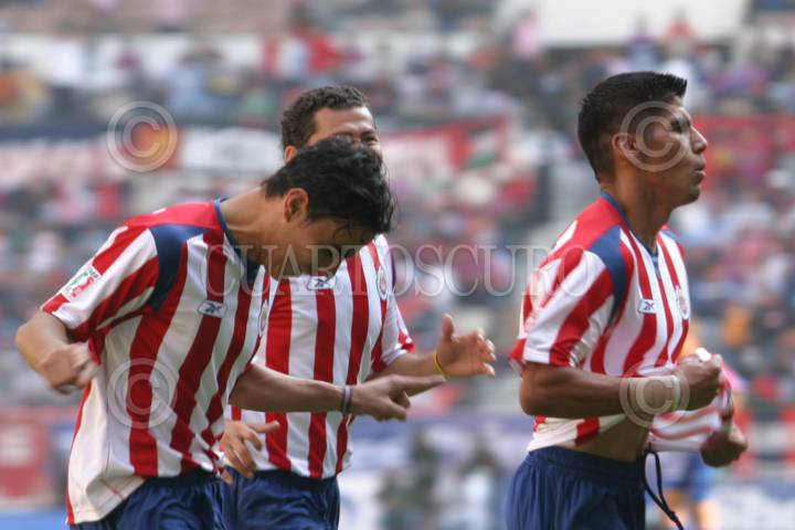 MEXICO, D.F. 16ENERO2005.- Carlos Salcedo de las Chivas Rayas del Guadalajara festeja el gol que anotó en la porteria del Atlante al minuto 67, en el duelo que terminó 1 a 1. FOTO: Nelly Salas/CUARTOSCURO.COM