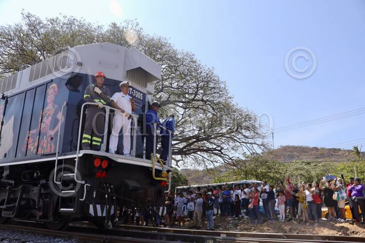 SALINA CRUZ, OAXACA, 22DICIEMBRE2023.- Aspectos de la inauguración del Tren Interoceánico del Istmo de Tehuantepec que conectará al estado con Coatzacoalcos, Veracruz. FOTO: CUARTOSCURO.COM
