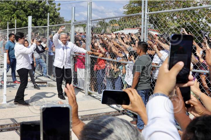 CIUDAD IXTEPEC, OAXACA, 22DICIEMBRE2023.- Decenas de personas esperaron el arribo del primer tren de pasajeros de la Línea Z del Corredor Interoceánico en la estación de Ciudad Ixtepec, Oaxaca. El presidente Andrés Manuel López Obrador inauguró la estación y saludó a las personas, mientras el tren siguió su recorrido hacia Coatzacoalcos, Veracruz a donde se espera que arribe a las 20:00 horas. FOTO: CAROLINA JIMÉNEZ/CUARTOSCURO.COM