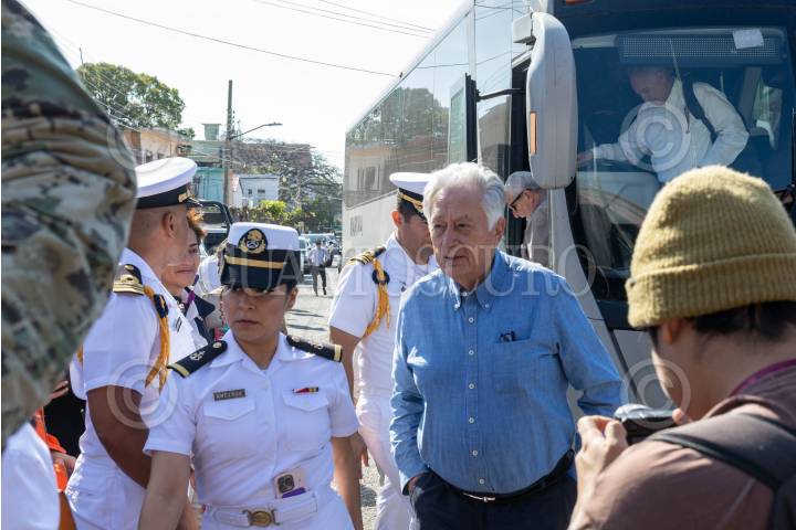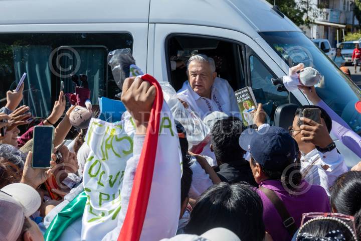SALINA CRUZ, OAXACA, 26FEBRERO2024.- Andrés Manuel López Obrador, presidente de México, llega a la inauguración del Rompeolas de Salina Cruz, el mandatario estuvo acompañado por el secretario de Marina, Rafael Ojeda y el titular de la Defensa, Luis Cresencio Sandoval. FOTO: DANIEL AUGUSTO/ CUARTOSCURO.COM