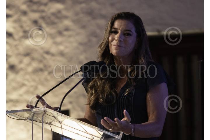 CIUDAD DE MÉXICO, 07SEPTIEMBRE2023.- Paty Chapoy durante la ceremonia de premiación Caminos de la Libertad para jóvenes y al terminar este se inauguro la exposición con las obras de los artistas premiados. El evento se llevó a cabo en el Museo Casa del Risco. FOTO: ANDREA MURCIA /CUARTOSCURO.COM