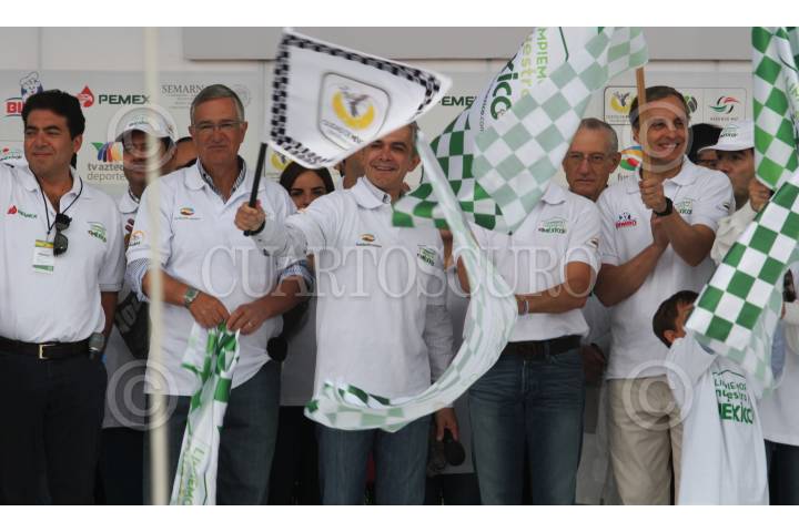 MÉXICO, D.F., 20SEPTIEMBRE2015.- Miguel Ángel Mancera, jefe de gobierno capitalino, acompañado de Ricardo Salinas Pliego, presidente del Grupo Salinas, dieron el banderazo de salida de la jornada de limpieza “Limpiemos México”. Para llevar a cabo la jornada, ciudadanos se organizaron en pequeños grupos para limpiar las calles aledañas al Zócalo. Hace un par de días, durante los Festejos Patrios, la Secretaría de Obras y Servicios detalló que se generó un estimado de 150 toneladas de desechos sólidos en la periferia del Zócalo. En la imagen, de izquierda a derecha, Daniel Servitje, director de Grupo Bimbo, la secretaria Patricia Mercado, el jefe de gobierno Miguel Ángel Mancera y Rafael Pacchiano, titular de Semarnat. FOTO: MARÍA JOSÉ MARTÍNEZ /CUARTOSCURO.COM