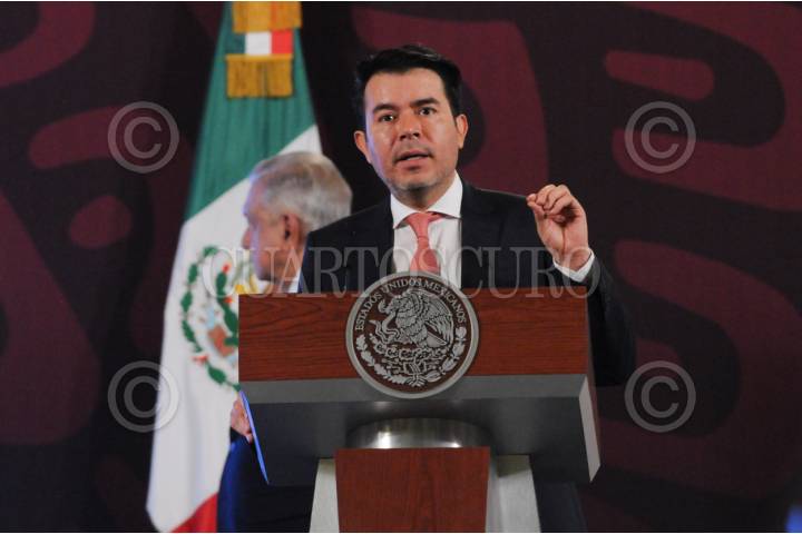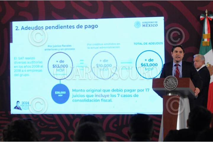 CIUDAD DE MÉXICO, 20MARZO2024.- Arturo Medina Padilla, titular del SAT, participó en la conferencia mañanera donde presentó ante la prensa la situación que atraviesa Grupo Salinas. FOTO: DANIEL AUGUSTO /CUARTOSCURO.COM