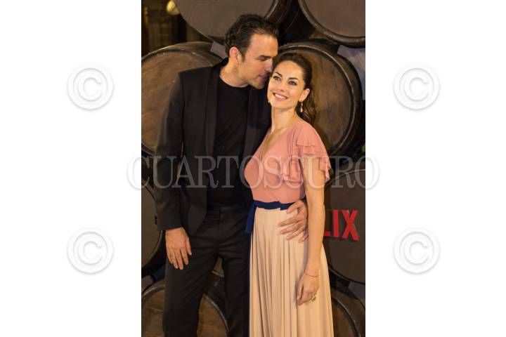 CIUDAD DE MÉXICO, 11SEPTIEMBRE2019.- Fernando Rovzar y Bárbara Mori posan para los fotógrafos durante la alfombra roja de la seria "Monarca", anoche en el Antiguo Colegio de San Ildefonso. FOTO: ISAAC ESQUIVEL /CUARTOSCURO.COM