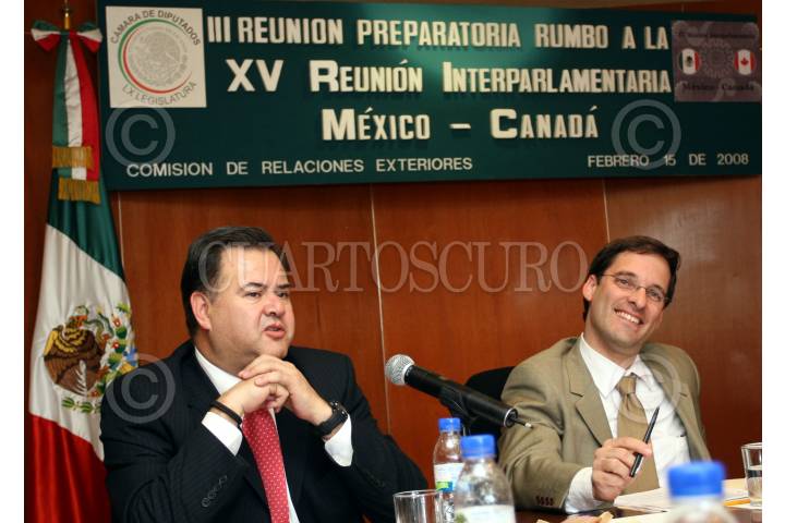MÉXICO, D.F., 15FEBRERO2008.- Guillermo Hernández Salmeron y Alejandro Estivill, funcionarios de la Secretaría de Relaciones Exteriores, dieron a conocer los pormenores de la XV reunión parlamentaria México-Canada, en la Cámara de Diputados. FOTO: GUILLERMO PEREA/CUARTOSCURO.COM