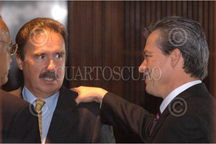 MÉXICO D.F. 19SEPTIMEBRE2006.- El coordinador de los diputados del PRI Emilio Gamboa Patrón y Gerardo Buganza Salmerón del PAN, a su llegada a la Sesión en la Cámara de Diputados. FOTO: GUILLERMO PEREA/CUARTOSCURO.COM
