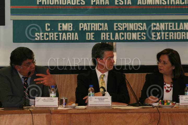 MÈXICO, D.F. 21FEBRERO2007.- La secretaria de Relaciones Exteriores, Patricia Espinoza Castellano se reuniò con diputados en el recinto de San Làzaro. Gerardo Buganza Salmeròn, presidnte de la comisiòn de relaciones exteriores y el diputado Josè Murat estuvieron presentes. FOTO: PAOLA HIDALGO/CUARTOSCURO.COM
