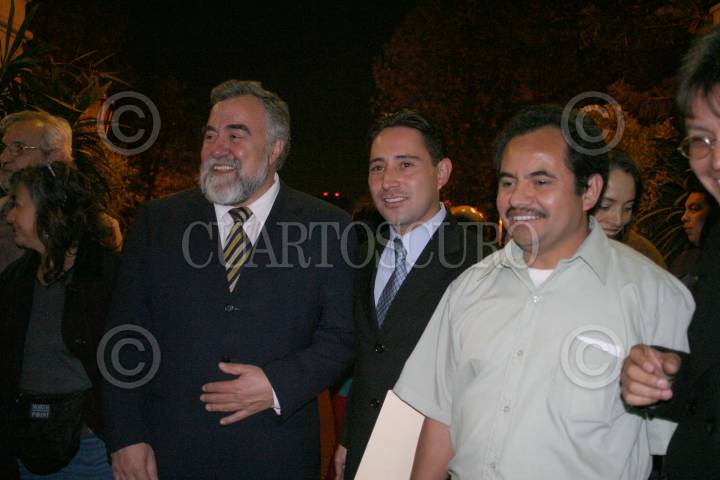 MEXICO, D.F. 13ENERO2005.- Alejandro Encinas, secretario de gobierno del GDF, Rodolfo Zepeda, Director del Centro Cultural San Angel y uno de los organizador la muestra Santiago Salmerón, durante la inauguración de ¨Expofotoperiodismo2005¨. Decenas de imágenes periodísticas captadas por diversos reporteros gráficos de los medios de información son exhibidas en el Centro Cultural San Ángel. FOTO: Sandra Perdomo/CUARTOSCURO.COM