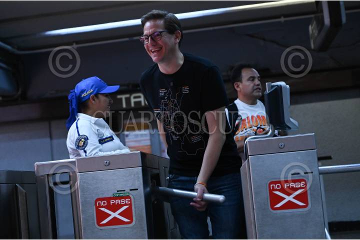 CIUDAD DE MÉXICO, 28MAYO2024.- Salomón Chertorivski, candidato de MC a la jefatura de gobierno, entra a una de las estaciones del STC Metro. FOTO: DANIEL AUGUSTO/ CUARTOSCURO.COM