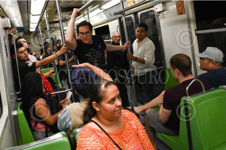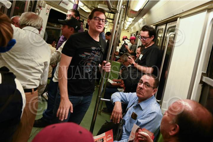 CIUDA DE MÉXICO, 22MAYO2024.- Salomón Chertorivski, candidato a la jefatura de Gobierno por Movimiento Ciudadano, realizó un recorrido en el Sistema de Transporte Colectivo (STC) Metro de la estación Zapata a Tláhuac, en donde compartió con usuarios sus propuestas de gobierno en materia de movilidad. FOTO: MARIO JASSO/CUARTOSCURO.COM