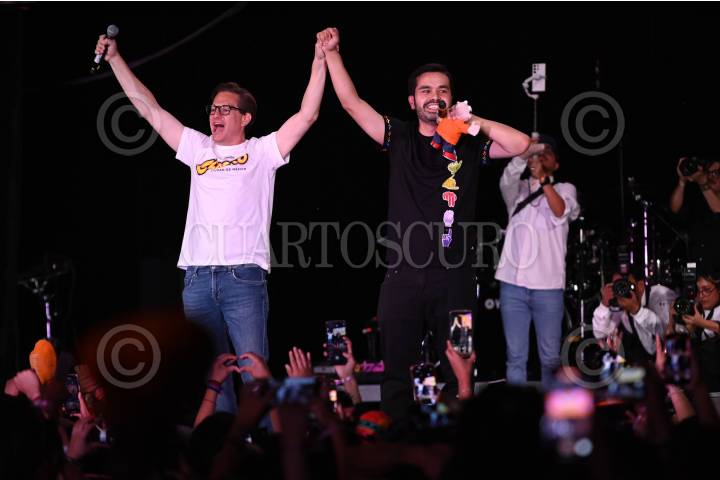 CIUDAD DE MÉXICO, 29MAYO2024.- Salomón Chertorivski, candidato a jefe de gobierno por parte de MC y Jorge Álvarez Maynez, candidato presidencial del mismo partido, cierran sus actividades electorales ofreciendo un concierto. FOTO: DANIEL AUGUSTO/ CUARTOSCURO.COM