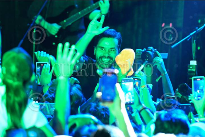 CIUDAD DE MÉXICO, 29MAYO2024.- Jorge Álvarez Maynez, candidato presidencial de MC, arroja peluches a sus simpatizantes durante el concierto de su cierre de campaña. FOTO: DANIEL AUGUSTO/ CUARTOSCURO.COM