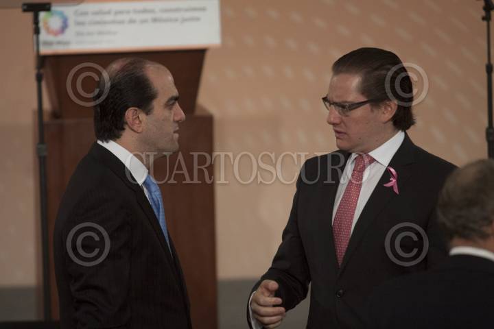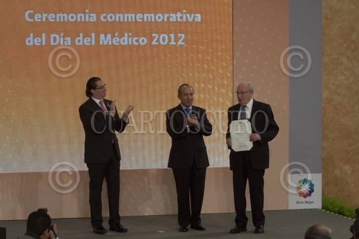 MÉXICO, D.F., 23OCTUBRE2012.- Daniel Murillo Karam, director del IMSS y Salomón Chertorivski Woldenberg, durante en la ceremonia conmemorativa del Día del Médico que se realizó en la Residencia Oficial de Los Pinos. FOTO: MOISÉS PABLO /CUARTOSCURO.COM