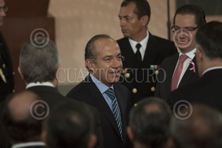 MÉXICO, D.F., 23OCTUBRE2012.- Felipe Calderón Hinojosa, Presidente de México, y Salomón Chertorivski Woldenberg, secretario de Salud, encabezaron la ceremonia conmemorativa del Día del Médico que se realizó en la Residencia Oficial de Los Pinos. FOTO: MOISÉS PABLO /CUARTOSCURO.COM