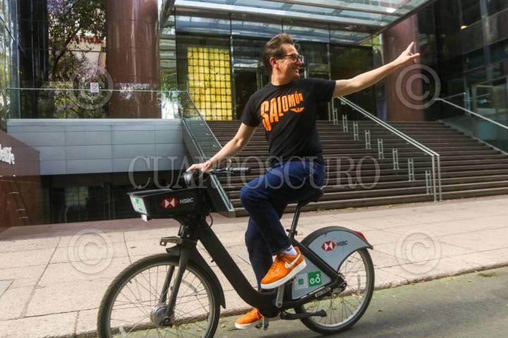 CIUDAD DE MÉXICO. 18MARZO2024.- Salomón Chertorivski Woldenberg, candidato a la jefatura del Gobierno de la Ciudad, por el Movimiento Ciudadano; en una ruta ciclista de monumento a ala Madre hasta el Ángel de la Independencia donde realizó proselitismo y pego propaganda de su campaña. FORO: VICTORIA VALTIERRA/CUARTOSCURO.COM