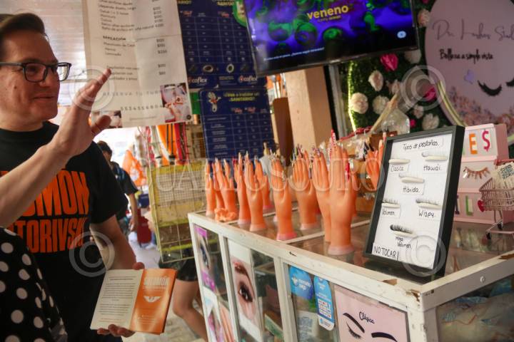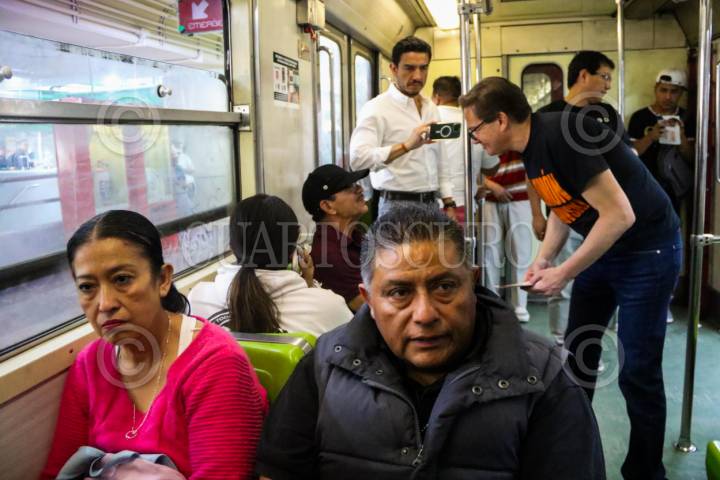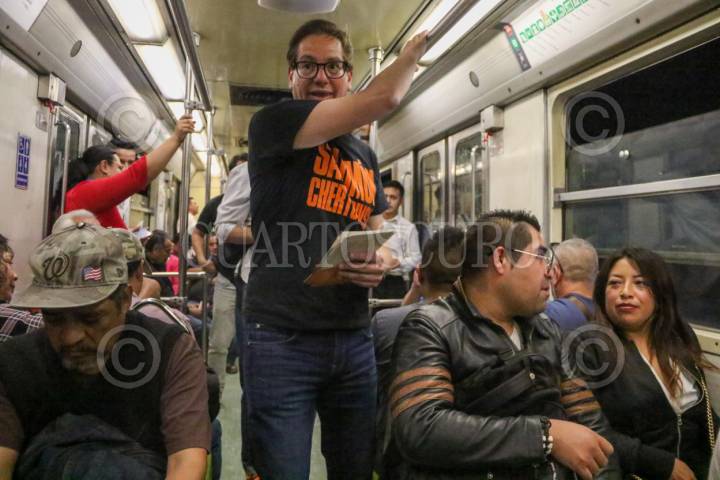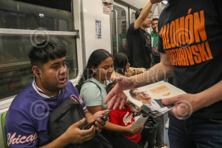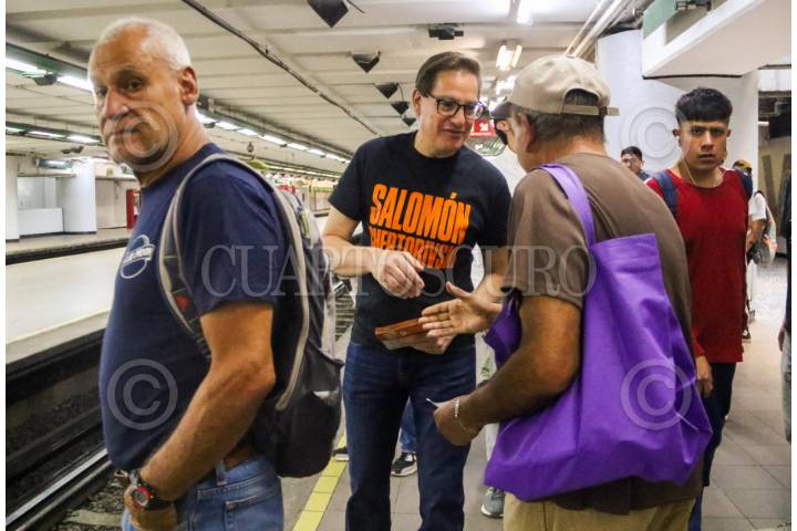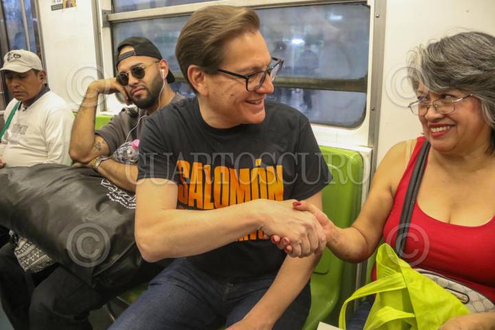 CIUDAD DE MÉXICO. 26MARZO2023.- El candidato del Movimiento Ciudadano, Salomón Chertorivski Woldenberg, a la jefatura de Gobierno realizó proselitismo en la línea 8 del Metro de Garibaldi a Santa Anita, posteriormente se dirigió al mercado de Hidalgo, dónde locatarios le pidieron apoyo para seguridad en el mercado público de la colonia Doctores. FOTO: VICTORIA VALTIERRA/CUARTOSCURO.COM