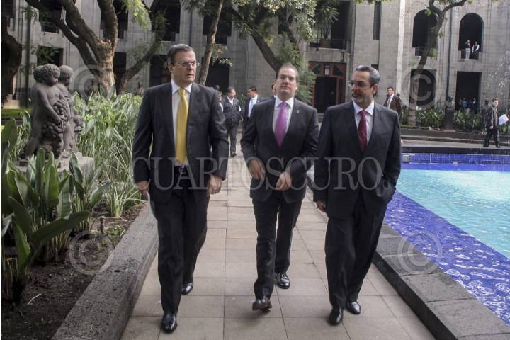 MÉXICO, D.F., 13MAYO2014.- Salomón Chertorivsky, secretario de Desarrollo Económico; Cuauhtemoc Cardenas, coordinador de Asuntos Internacionales y Miguel Torruco Marqués, secretario de Turismo del Gobierno del Distrito Federal durante una conferencia de prensa para informar de la gira de trabajo a celebrarse en los próximos días por la ciudad de Chicago, en el marco del Memorándum de Entendimiento para el Establecimiento de las Ciudades Globales México y Chicago. FOTO: RODOLFO ANGULO /CUARTOSCURO.COM