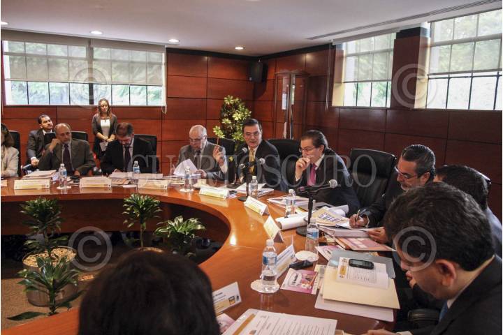 MÉXICO, D.F., 25JULIO2012.- Marcelo Ebrard Casaubón, jefe de Gobierno local, Salomón Chertorivsky, secretario de Salud, y Carlos Tena Tamayo, titular de la Comisión Nacional contra las Adicciones, durante la reunión ordinaria de dicho consejo. FOTO: CUARTOSCURO.COM