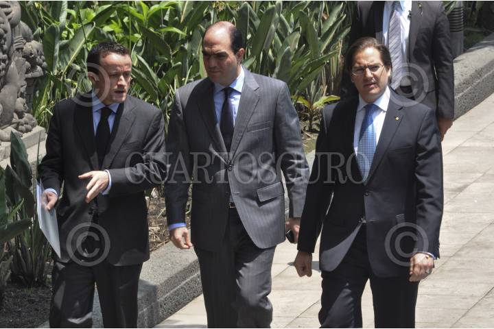 MÉXICO, DF 30JULIO2012 .-El titular de la COFEPRIS Mikel Arreola, el director general del IMSS, Daniel Karam, y el Secretario de salud, Salomón Chertorivski, ellegan a la presentación del quinto y sexto paquete de liberación de medicamentos genéricos para el ahorro de las familias mexicanas. FOTO: EDUARDO MORALES /CUARTOSCURO.COM