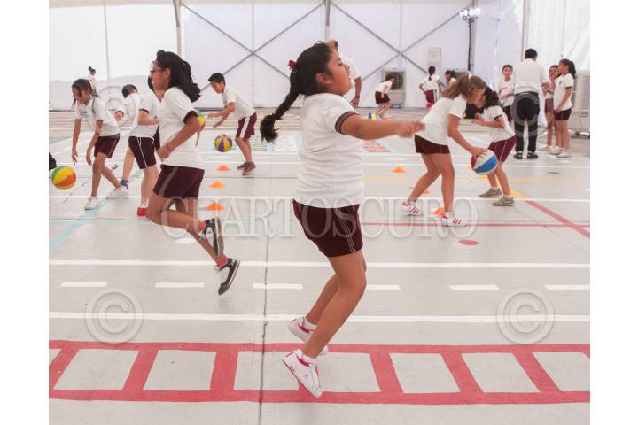 CIUDAD DE MÉXICO, 22MAYO2017.- Niños de la escuela primaria "Centro Escolar Revolución" hacen ejercicio tras el lanzamiento del programa "Salud en tu Escuela", que busca brindarles a niños de educación básica, de al menos once; orientación médica, chequeos de peso, pláticas, y activación física, para que tengan un estilo de vida saludable. FOTO: MOISÉS PABLO /CUARTOSCURO.COM