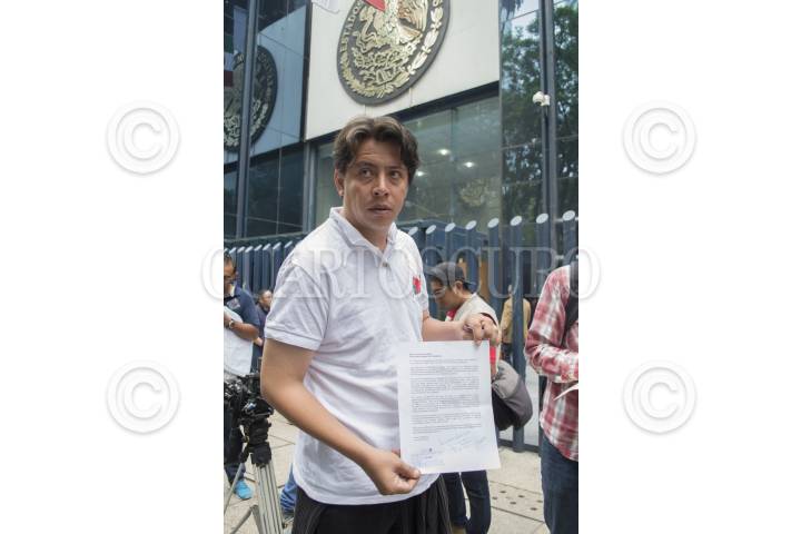 CIUDAD DE MÉXICO, 01JUNIO2017.- Periodistas provenientes del estado de Michoacán, acudieron a la Procuraduría General de la República (PGR) para que la depencia se encargue del caso de Salvador Adame Pardo, periodista desaparecido el pasado 18 de mayo. Los compañeros declararón que el gobierno estatal ha tratado de cesurar algunas publicaciones de la prensa. FOTO: SELENE PACHECO /CUARTOSCURO.COM