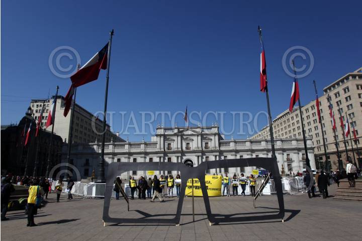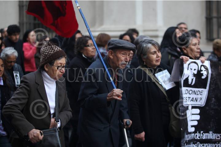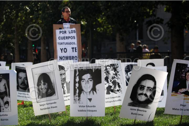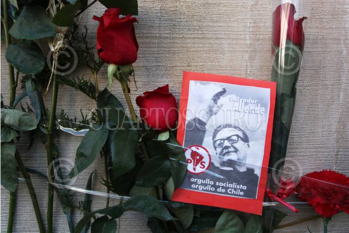 SANTIAGO, CHILE., 11SEPTIEMBRE2015.- Decenas de personas, colectivos y asociaciones políticas conmemoraron el 42 aniversario del golpe de estado que derrocó al presidente socialista Salvador Allende y el inicio de la dictadura militar instaurada por Augusto Pinochet. Los asistentes recordaron a los desaparecidos, torturados y asesinados del régimen. FOTO: FÉLIX MÁRQUEZ /CUARTOSCURO.COM