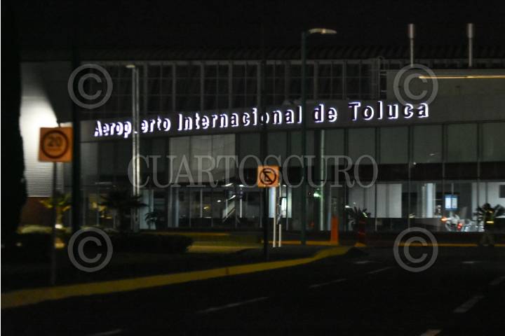 Aspectos del Aeropuerto Internacional de Toluca (AIT) a donde arribó el General Salvador Cienfuegos, ex titular de la Secretaria de la Defensa, llegando al hangar de la Fiscalía General de la República (FGR).