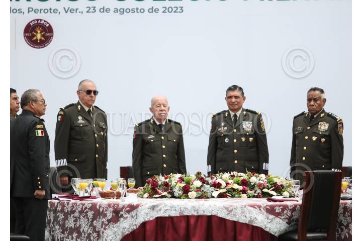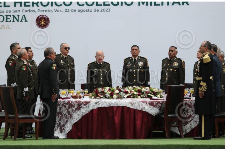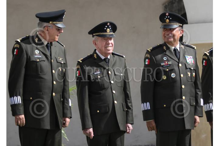 Luis Cresencio Sandoval, secretario de Sedena así como los ex secretarios: Enrique Cervantes Aguirre del 94 a 2000; Guillermo Galván Galván 2006-2012; Salvador Cienfuegos 2012-2018 y generales retirados del plantel “Fortaleza de San Carlos” sostuvieron desayuno en el marco a los 200 años de la creación del Heroico Colegio Militar.
