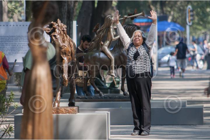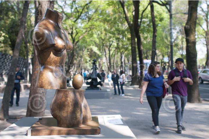 CIUDAD DE MÉXICO, 28FEBRERO2017.- 20 esculturas de Salvador Dalí fueron montadas sobre Paseo de la Reforma en la acera de la Museo Nacional de Antropología. Las obras pertenecen al Museo Soumaya, propiedad del empresario Carlos Slim y estarán hasta mediados del mes de abril. FOTO: DIEGO SIMÓN SÁNCHEZ /CUARTOSCURO.COM