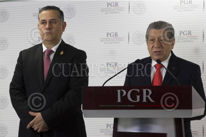 CIUDAD DE MÉXICO, 02FEBRERO2016.- Salvador Muñoz Caño, titular de la Policía Ministerial de la Agencia de Investigación Criminal, y Gualberto Ramírez Gutiérrez, fiscal Antisecuestros, ofrecieron los detalles de un operativo en el poblado de Meyuca, municipio de Coatepec Harinas, Estado de México, donde lograron rescatar a la víctima con vida así como la detención de los presuntos secuestradores. FOTO: MOISÉS PABLO /CUARTOSCURO.COM