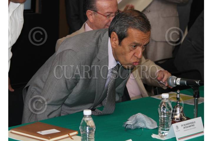 CHILPANCINGO, GUERRERO, 15 ENERO2015.- Salvador Rogelio Ortega Martínez gobernador interino, durante la entrega del cuarto informe de gobierno a la meza directiva del congreso del estado y que recibió el presidente de la comisión de gobierno del congreso del estado Bernardo Ortega. FOTO: JOSÈ I. HERNÀNDEZ /CUARTOSCURO.COM