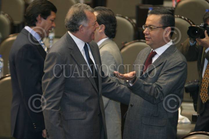 MEXICO, D.F. 29SEPTIEMBRE2005.- Los diputados Sami David David y Germán Martínez conversan previo a la comparecencia del secretario de Hacienda y Credito Público en San Lázaro. FOTO: Nellly Salas/CUARTOSCURO.COM