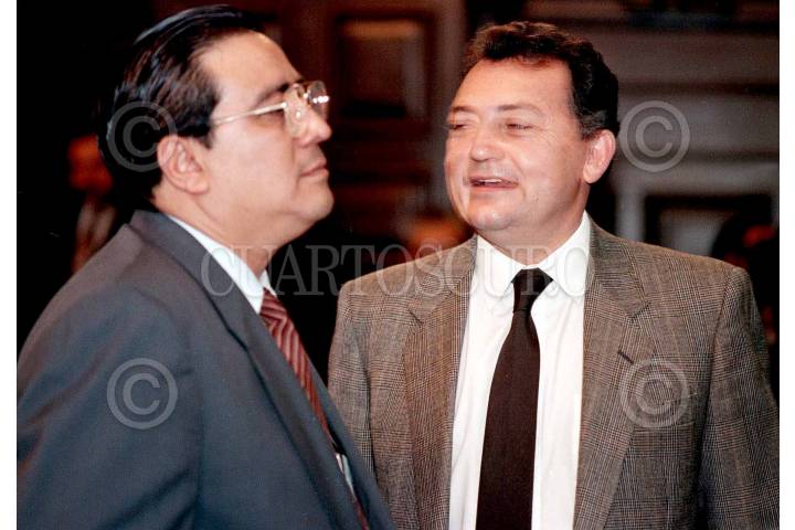 Los senadores Pablo Salazar Mendiguchía y Sami David David cuando eran compañeros de la bancada priísta, ahora son contendientes a ocupar la gubernatura de su estado natal. Foto: José Nuñez/CUARTOSCURO. Archivo