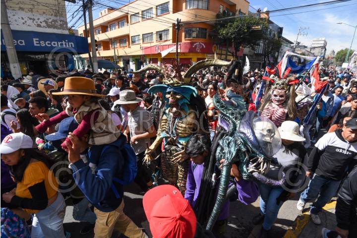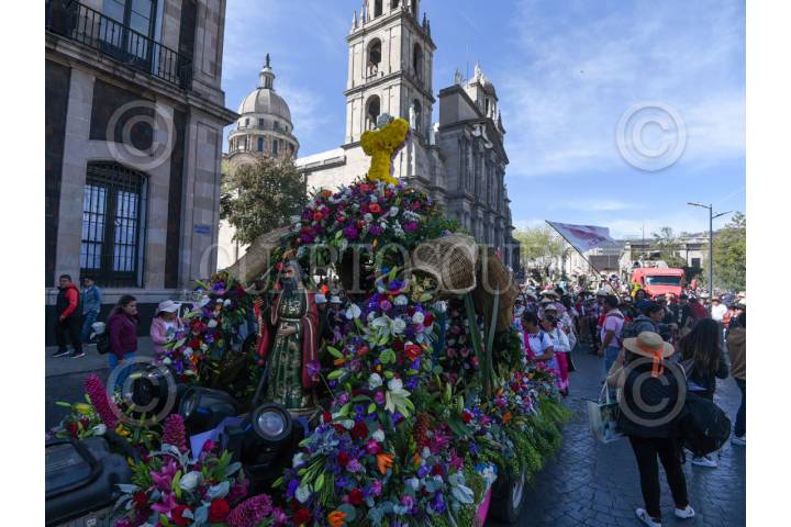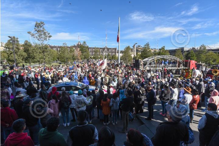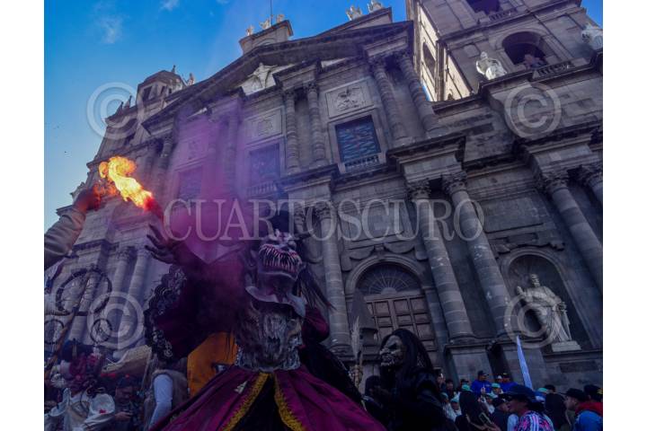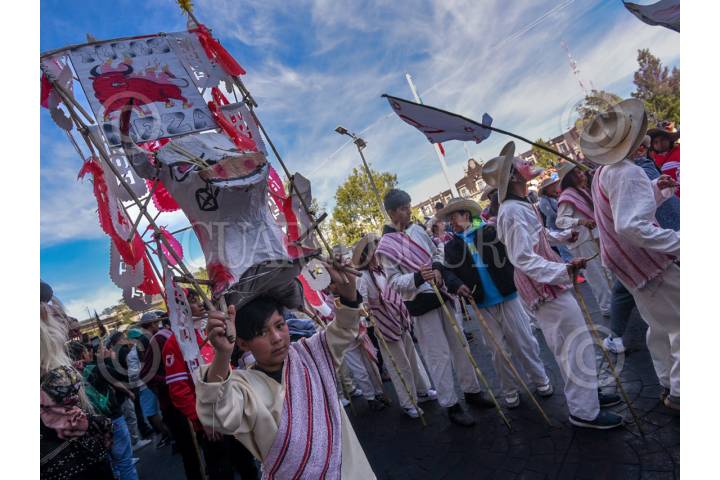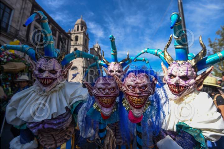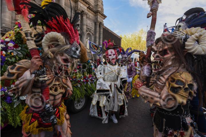 TOLUCA, ESTADO DE MÉXICO, 12ENERO2024.- Pobladores de San Andrés Cuexcontitlán iniciaron los festejos de su Santo Patrono con bailes, música, ataviados con trajes de monstruos, toritos inician un recorrido con algunos carros alegóricos, desde la Catedral de Toluca hasta el centro de su delegación en donde continuarán los festejos. FOTO: CRISANTA ESPINOSA AGUILAR /CUARTOSCURO.COM