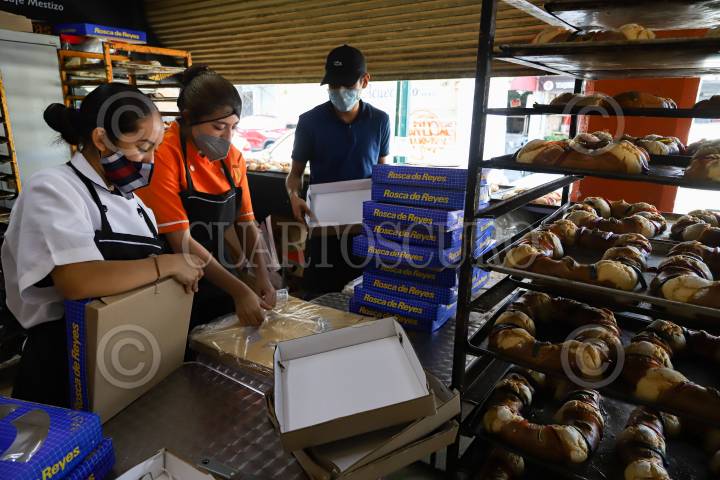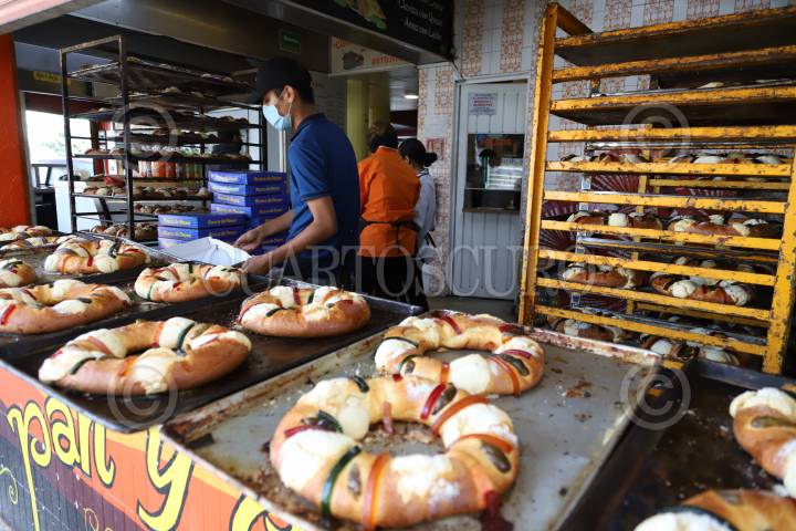 En la panificadora San Cayetano ubicada en la colonia Lindavista, se hornean un promedio de 3,500 Roscas de Reyes al día para cubrir la demanda de estas fechas.