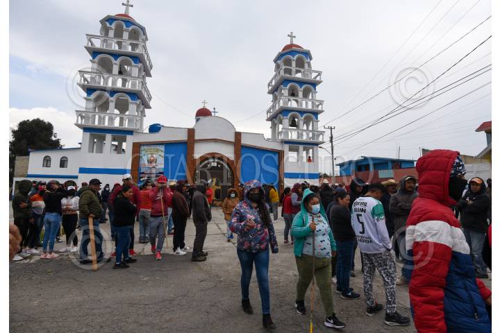Después de varias horas de permanecer retenidos presuntos extorsionadores en la iglesia de San Cayetano Morelos en Toluca, lograron salir al llegar a un acuerdo con los pobladores.