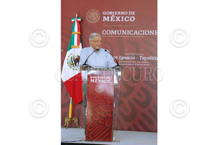 Andrés Manuel López Obrador, presidente de México, durante el evento protocolario de la supervisión de obra de la Carretera San Ignacio-Tayoltita en Sinaloa.