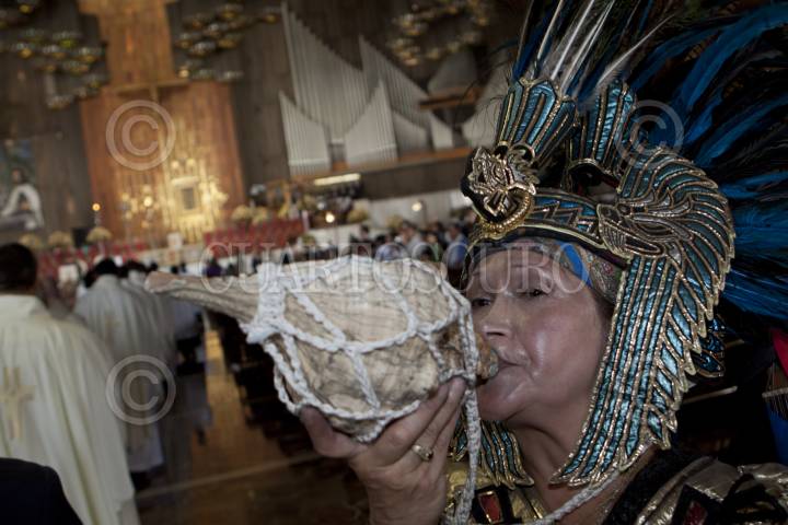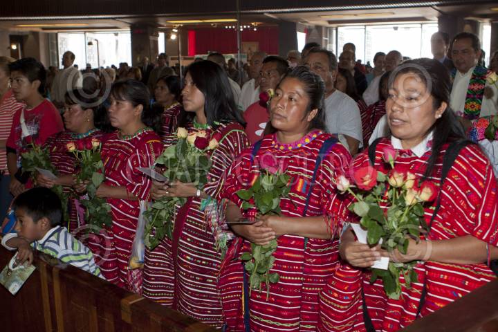 MÉXICO, D.F., 31JULIO2012.- Indígenas durante una misa en honor a los 10 años de la canonización de San Juan Diego Cuauhtlatoatzin que se realizo en la antigua capilla de indios en la Basílica de Guadalupe. FOTO: RODOLFO ANGULO /CUARTOSCURO.COM