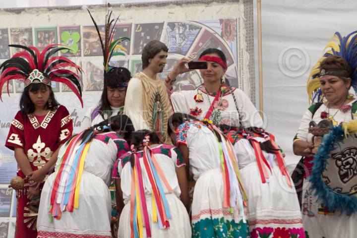 MÉXICO, D.F., 31JULIO2014.- Se realizó una procesión de indígenas de la explanada de la Basílica de Guadalupe a la Antigua Capilla de Indios en donde se realizo una misa en conmemoración de los 12 años de la canonización de San Juan Diego. FOTO: RODOLFO ANGULO /CUARTOSCURO.COM