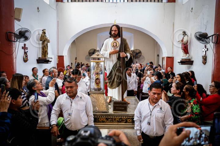 CIUDAD DE MÉXICO. 28MARZO2025.- Víctor González Torres, sueños de las Farmacias Similares, entrego un San Judas Tadeo a la Catedral Metropolitana de la ciudad de México. Este medio día se realizó la entrega de este Santo, protector de la causas difíciles o perdidas. FOTO: VICTORIA VALTIERRA/CUARTOSCURO.COM