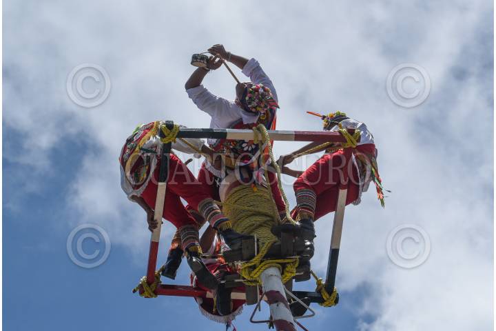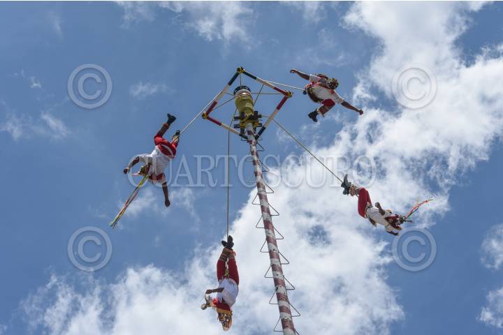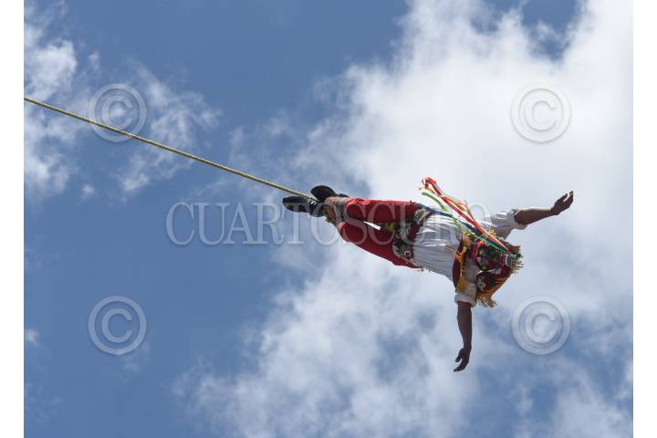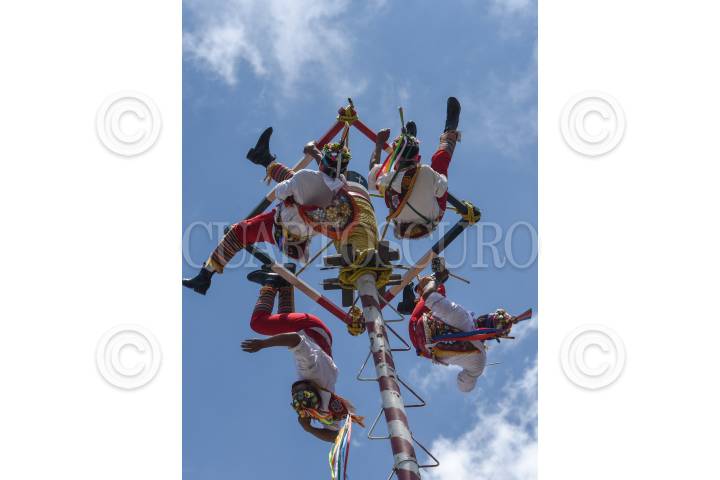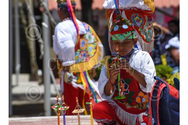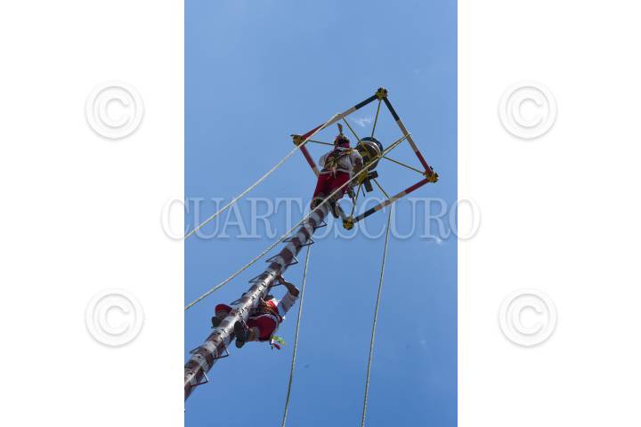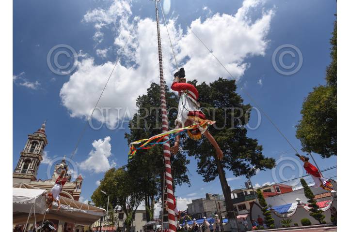 Como parte de los festejos en San Lorenzo Tepaltitlán en Toluca se lleva a cabo la presentación de la tradicional Danza de los Voladores de Papantla.