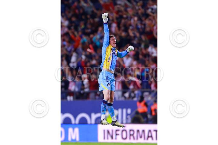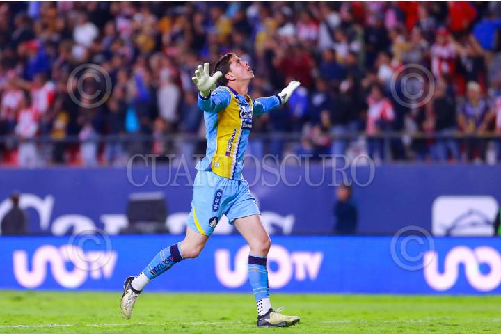 SAN LUIS POTOSÍ, SAN LUIS POTOSÍ, 28NOVIEMBRE2024.- Andres Sanchez, portero del Atlético San Luis festeja la victoria de su escuadra 3-0. Partido de ida de los cuartos de final del Torneo Apertura 2024 de la Liga BBVA MX en el Estadio Alfonso Lastras. FOTO: CÉSAR GÓMEZ/CUARTOSCURO.COM