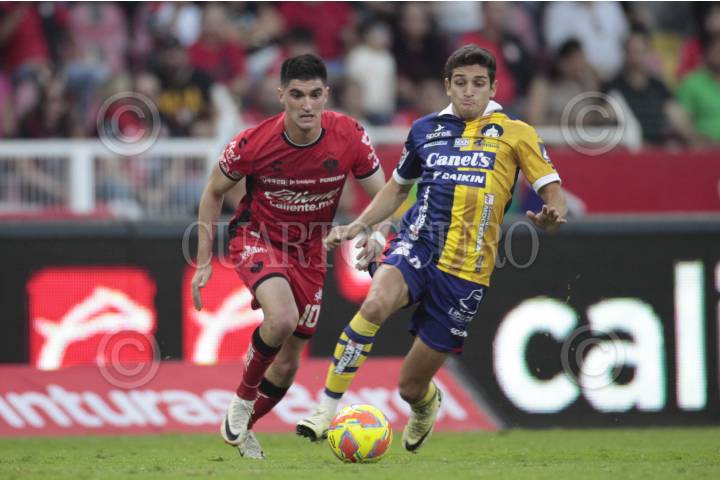 SAN LUIS POTOSÍ, SAN LUIS POTOSÍ, 28NOVIEMBRE2024.- Oscar Macías del Atlético San Luis y Guido Pizarro de los Tigres de la UANL, durante el partido de ida de los cuartos de final del Torneo Apertura 2024 de la Liga BBVA MX en el Estadio Alfonso Lastras. Los locales lograron imponerse 3-0. FOTO: CÉSAR GÓMEZ/CUARTOSCURO.COM