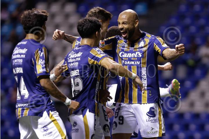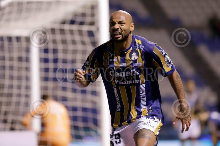 PUEBLA, PUEBLA, 15AGOSTO2025.- Joao Geraldino en festejo de gol durante el partido entre entre el Club Puebla y Atlético San Luis, correspondiente a la jornada 5 del torneo Apertura 2025 de la Liga BBVA MX, celebrado en el Estadio Cuauhtémoc. FOTO: MIREYA NOVO/ CUARTOSCURO.COM