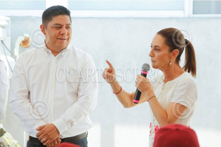 SAN LUIS POTOSÍ, SAN LUIS POTOSÍ, 24MAYO2025. Ricardo Gallardo, gobernador de San Luis Potosí, y Claudia Sheinbaum, presidenta de México, durante su visita la capital potosina dio inicio a la campaña de salud “Casa por casa” que visitará a la población en general para dar atención médica y prevenir enfermedades además de proveer de medicamentos de acuerdo a los diagnósticos realizados por el personal de salud. FOTO: MARCELO PALACIOS/CUARTOSCURO.COM
