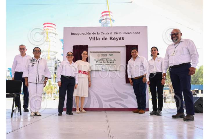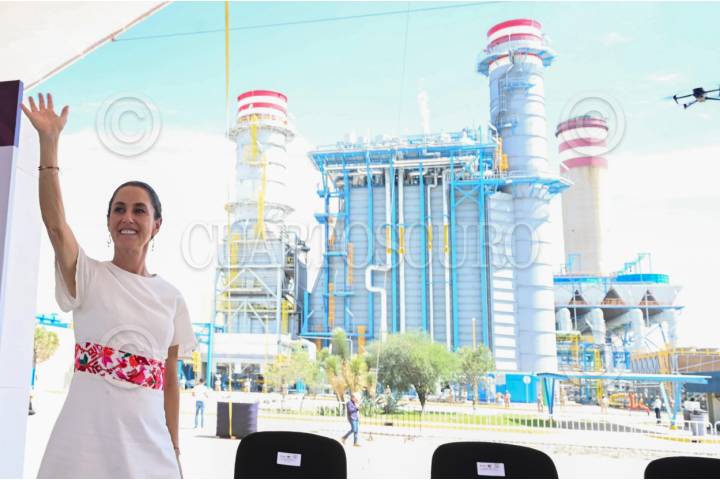 VILLA DE REYES, SAN LUIS POTOSÍ, 05JULIO2025.- Claudia Sheinbaum, presidenta de México, durante el acto protocolario por la inauguración de la Central Ciclo Combinado Villa de Reyes. FOTO: PRESIDENCIA/CUARTOSCURO.COM