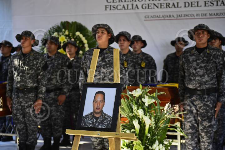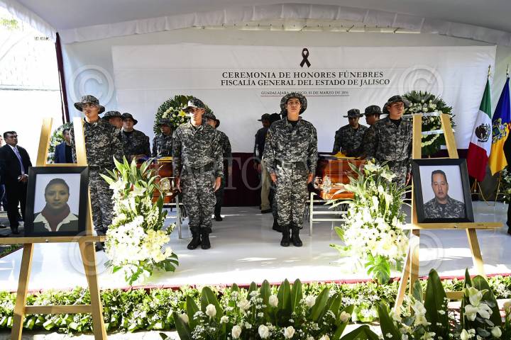 GUADALAJARA, JALISCO. 01MARZO2016.- Esta mañana en las Instalaciones de la Fiscalía General del Estado (FGE), se llevo a cabo un homenaje póstumo para dar el ultimo adiós a Blanca Celia Hernández Sámano y Ricardo Rivera Dorado, quienes pertenecían a ya dicha corporación y fueron abatidos el día de ayer en la colonia San Marcos de Guadalajara. FOTO : CUARTOSCURO.COM
