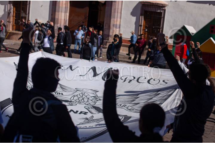 Estudiantes de la Escuela Normal Rural General Marías Ramos Santos, de San Marcos, arribaron a la capital zacatecana para marchar desde la Secretaría de Educación hasta la Plaza de Armas. La marcha se realizó ya que el 13 de enero del año 2000, los estudiantes fueron reprimidos por policías estatales, durante una visita a Zacatecas del entonces presidente de la república, Ernesto Zedillo, esto durante el gobierno de Ricardo Monreal Ávila.