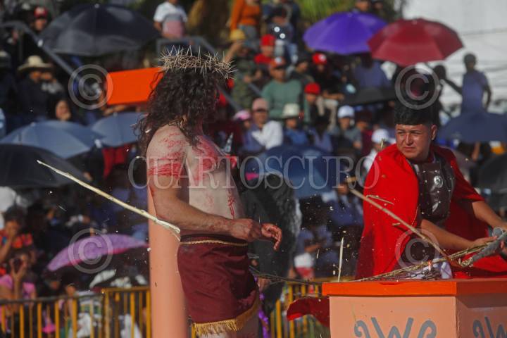 TLAQUEPAQUE, JALISCO. 29MARZO2024.- En el poblado de San Martin de las Flores como ya es tradición año con año, esta tarde se llevo a cabo la edición 230 de la “Judea en Vivo” o “Representación de la Pasión de Cristo” a donde según información de Protección Civil asistieron aproximadamente 50 mil personas a presenciar el acto religioso de Semana Santa. FOTO : FERNANDO CARRANZA GARCIA / CUARTOSCURO.COM