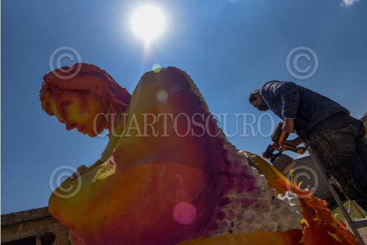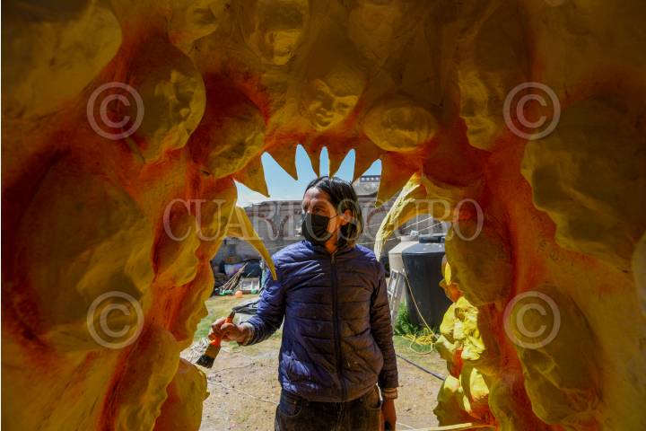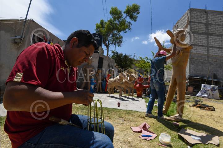 Marcelino Medina Galván, originario de San Mateo Tlachichilpan en Almoloya de Juárez, junto con su familia se encuentran trabajando su pieza para poder participar en el tradicional concurso de Judas, que por la pandemia de COVID-19 ha sufrido diversas modificaciones, no habrá exposición ni quema.